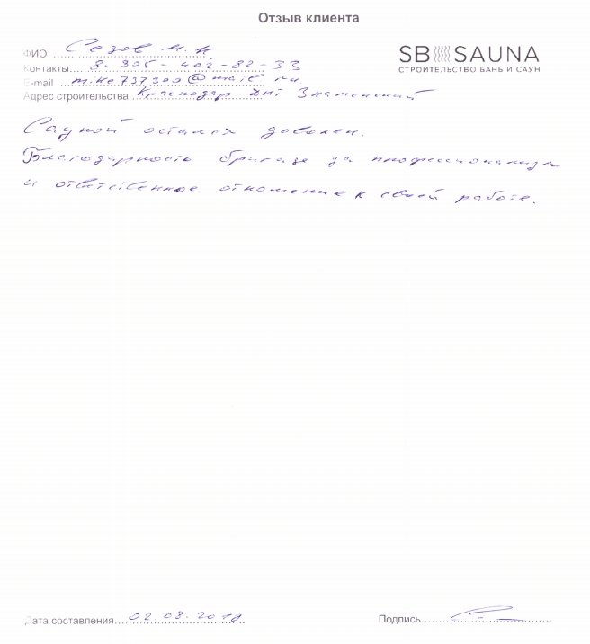 Отзыв наших клиентов